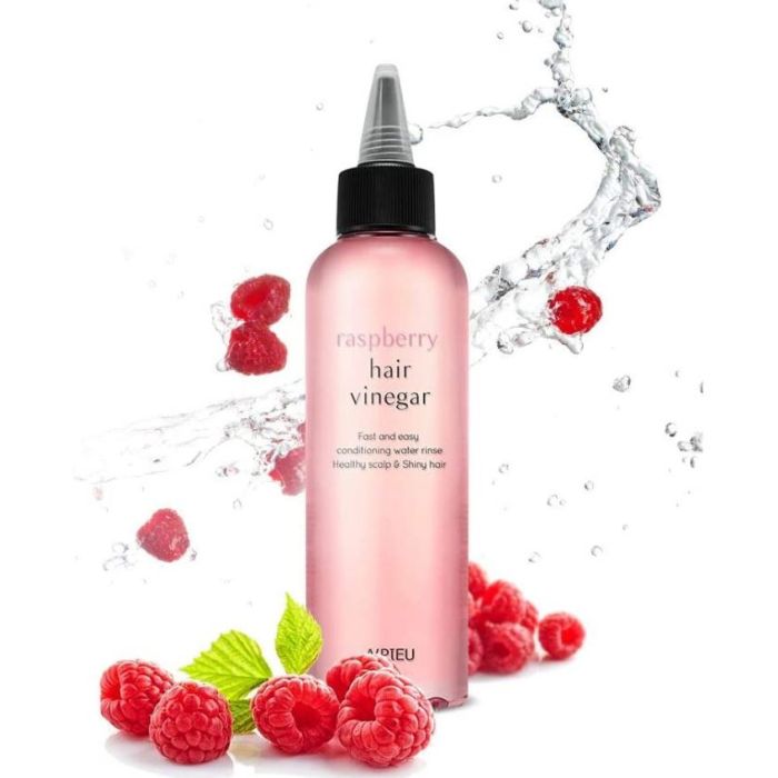 Vinaigre capillaire à la framboise qui équilibre le pH du cuir chevelu, élimine les résidus de produits et apporte de la brillance à vos cheveux.