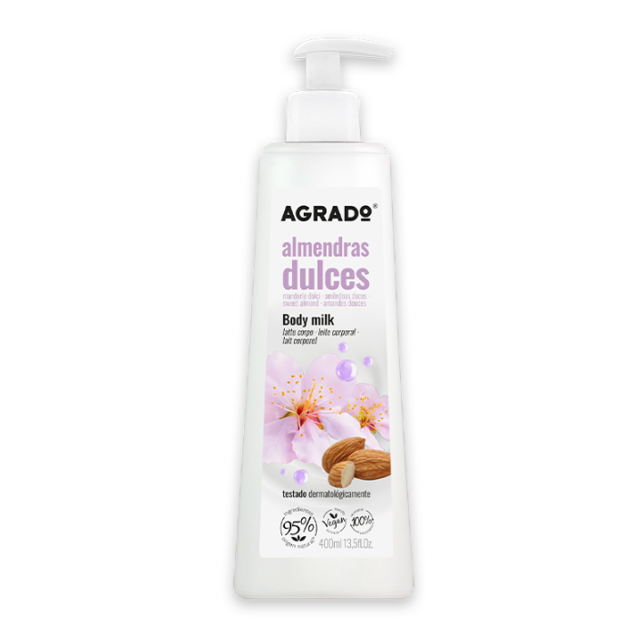 AGRADO BODY MILK : laits corporels hydratants pour l’ensemble du corps, adaptés à tous les types de peau. Leur formule soigne, hydrate et adoucit la peau au quotidien. AGRADO BODY MILK, enrichi en huiles naturelles et délicatement parfumé, maintient la peau hydratée plus longtemps.