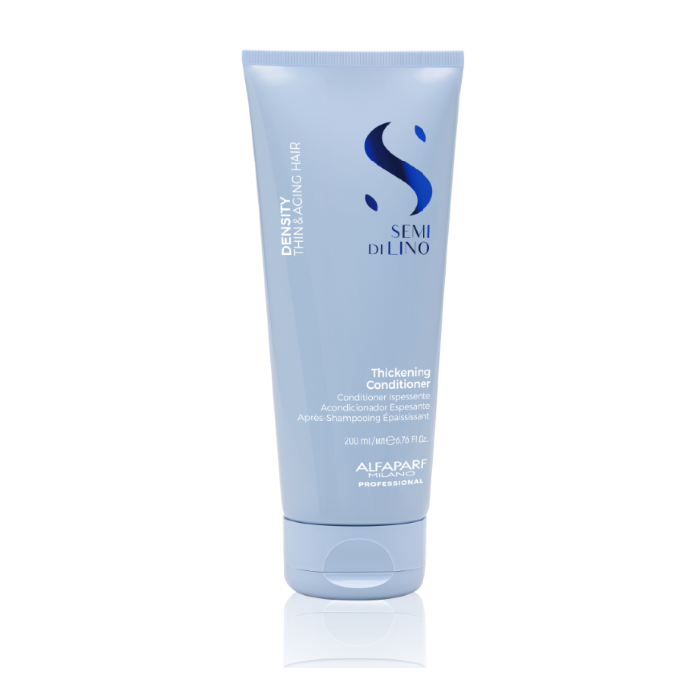 Le Alfaparf Milano Semi Di Lino Density Conditioner est un produit innovant conçu pour épaissir et revitaliser les cheveux fins et matures. Cet après-shampoing de 200 ml démêle et nourrit tout en apportant du volume et de la douceur, sans alourdir.