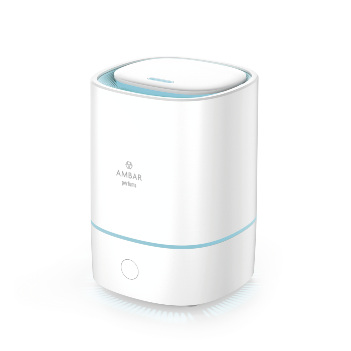 AMBAR PERFUMS Humidificateur d’Essence avec Lumière d’Ambiance vous aide à créer une ambiance saine avec les niveaux d’humidité nécessaires à votre corps et tous les bienfaits aroma-thérapeutiques des essences naturelles Ambar directement vaporisées dans l’atmosphère.