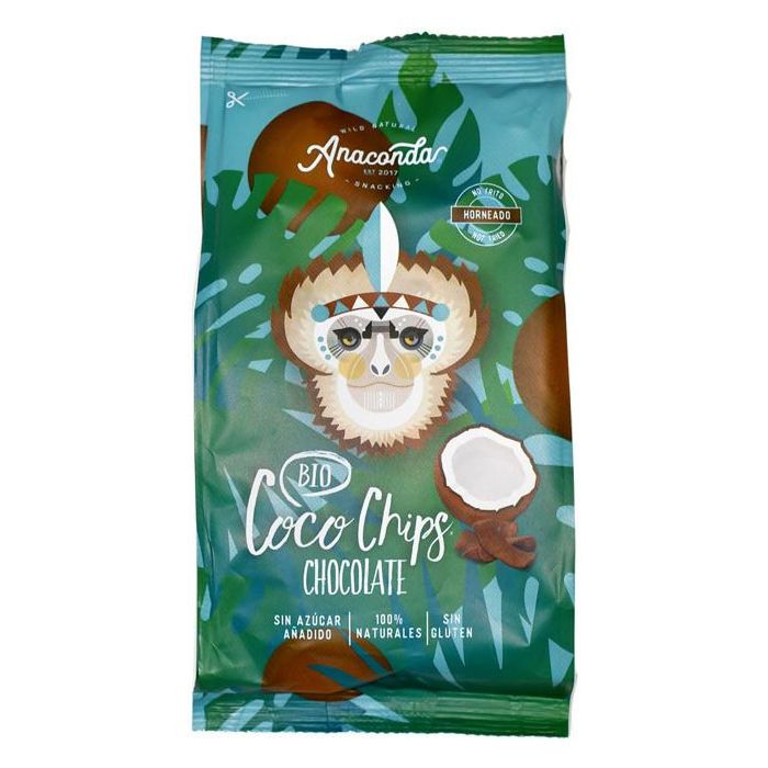 ANACONDA Coco Chips Chocolate a une saveur sucrée issue du nectar de la fleur de coco.