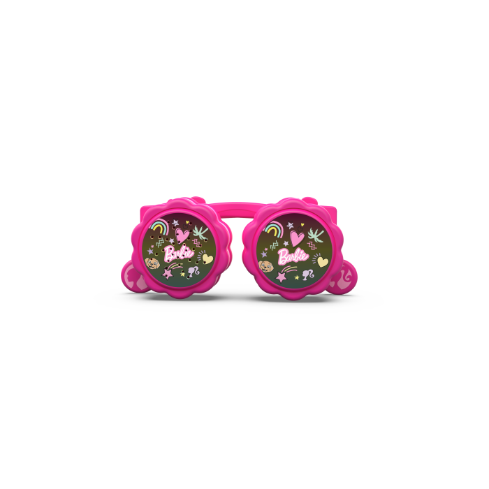 Ensemble 2 en 1 comprenant des lunettes de mode et du maquillage. Comprend 1 paire de lunettes, 3 ombres à paupières, 1 applicateur et 1 enceinte Bluetooth. Les lunettes peuvent être utilisées comme accessoire ou comme trousse de maquillage; l'une des lentilles se transforme en haut-parleur Bluetooth pour écouter de la musique.