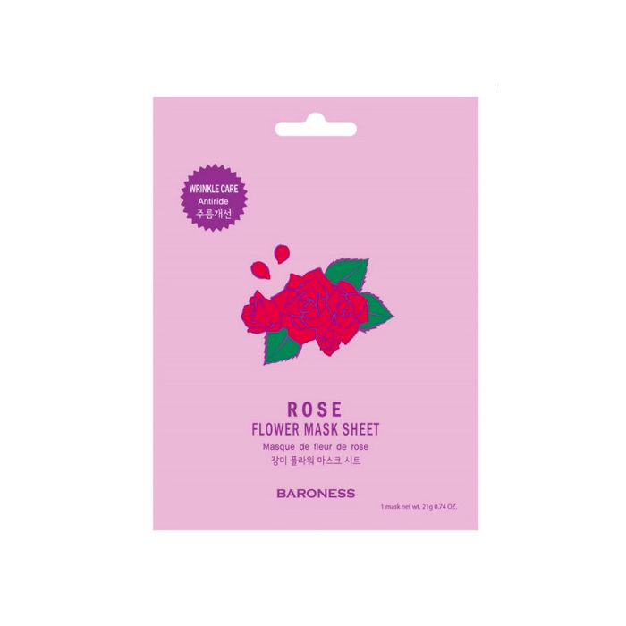 Masque en tissu à l’extrait de rose qui rajeunit, unifie et adoucit la peau.