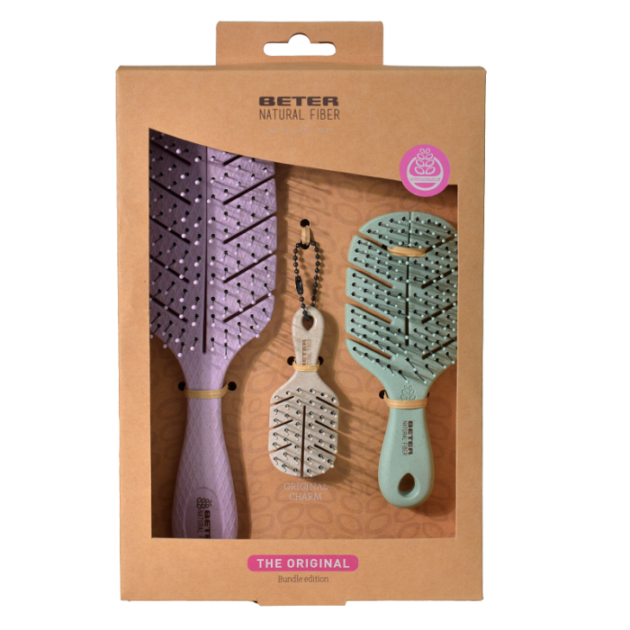 Les trois brosses iconiques de Beter réunies dans un seul coffret : la classique The Original, la version XS en format mini de voyage et le modèle Charm en format extra-mini porte-clés, qui démêle efficacement malgré sa taille. Un trio indispensable pour prendre soin de vos cheveux à tout moment, avec un design ergonomique et des matériaux durables.