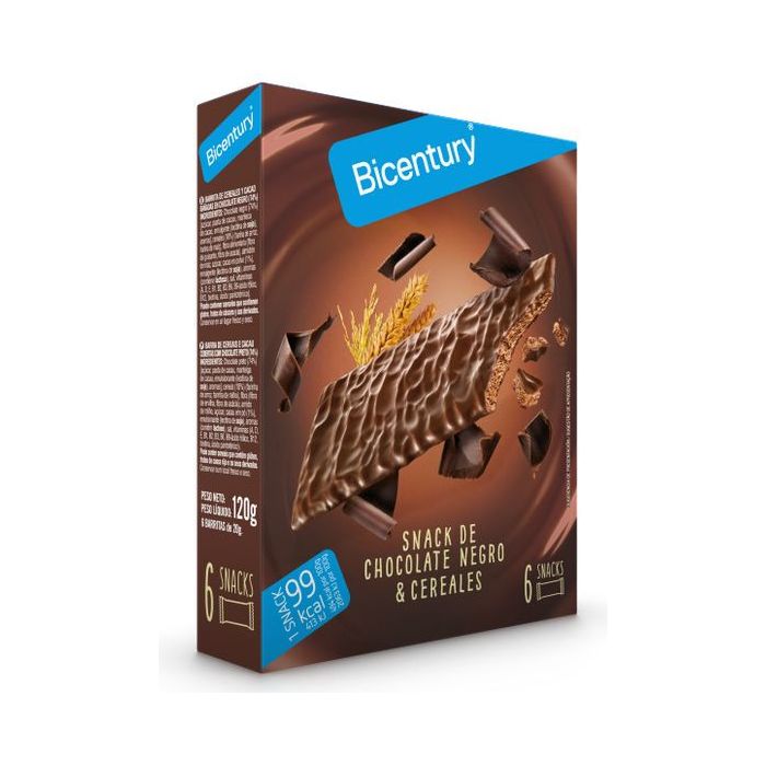 BICENTURY SARIALIS BARRES CÉRÉALES ET CHOCOLAT NOIR : barres de céréales et cacao enrobées de chocolat noir multivitaminé (74%).