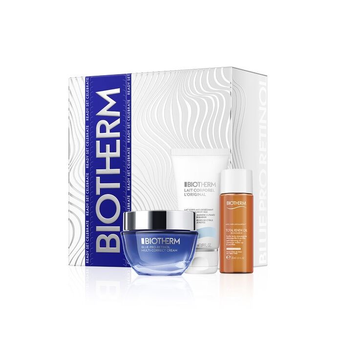 Contient : Blue Pro-Retinol Crème Multi-Correctrice 50 ml, Biosource Total Renew Oil 30 ml et Lait Corporel L'Original 50 ml.