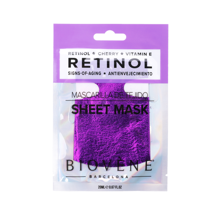 Découvrez l'innovant masque tissulaire anti-âge au rétinol, à la cerise et à la vitamine E de biovene, conçu pour revitaliser efficacement votre peau et lutter contre les signes de l'âge.