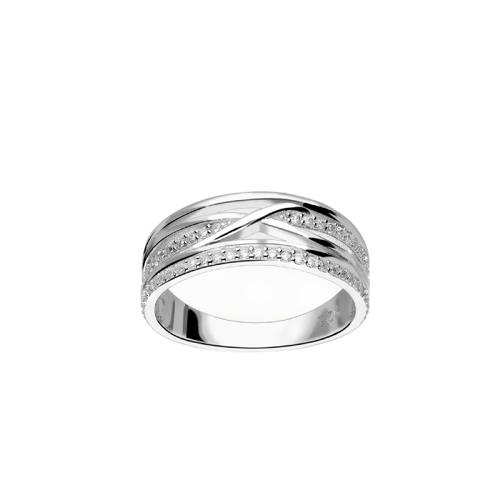 La bague Lía de BYDAMACOCO, fabriquée en argent sterling, présente un design de lignes polies entrecroisées qui enveloppent des éclats subtils, tels une étreinte de lumière en mouvement constant.