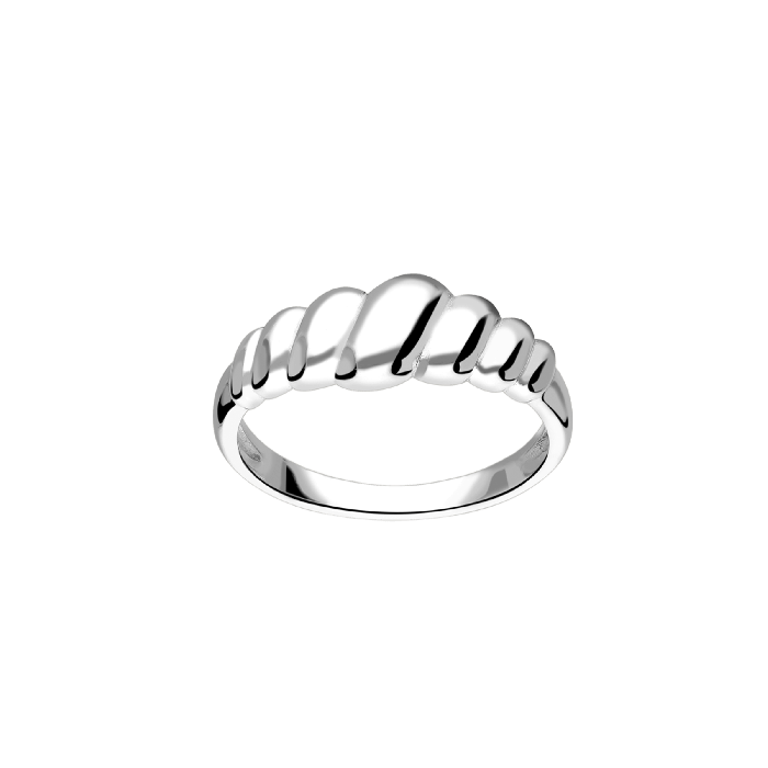 La bague Nacre de BYDAMACOCO, réalisée en argent sterling, présente un design ondulé et poli qui évoque la texture délicate des perles marines.