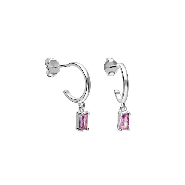 Les boucles d'oreilles Aurore sont fabriquées en argent sterling avec une gemme rose pendante. Un design lumineux qui apporte au visage une touche romantique et féminine.