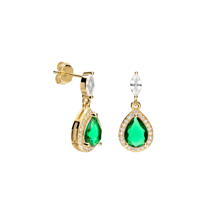 Les boucles d'oreilles Cabo Verde sont fabriquées en argent plaqué or 18 carats avec une pierre vert profond. Un design vibrant et frais qui se distingue par une élégance naturelle et une touche colorée.