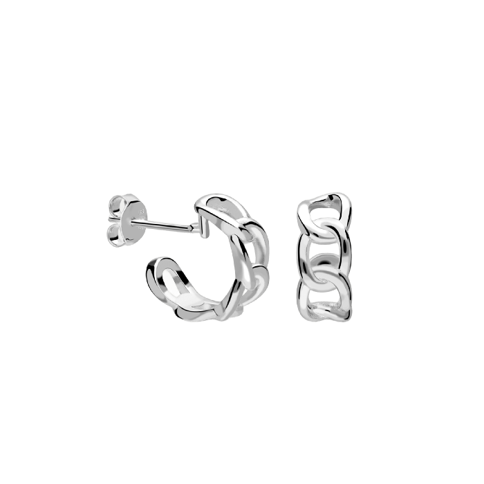 Les Boucles d’Oreilles Cannelle sont conçues en argent sterling avec une texture de maillon moderne. Une pièce au raffinement discret et à l’allure chaleureuse.