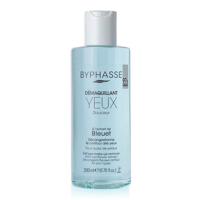 Le démaquillant pour les yeux Douceur de Byphasse, enrichi en extrait de bleuet, nettoie en douceur tout en éliminant efficacement le maquillage.