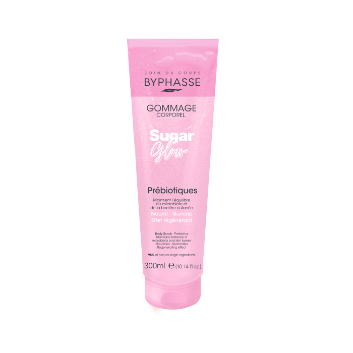 Gommage corporel Glow Sunshine aux prébiotiques. Il préserve l’équilibre de la microbiote et la barrière cutanée. Exfolie la peau en douceur, la laissant lisse, lumineuse et délicieusement parfumée.