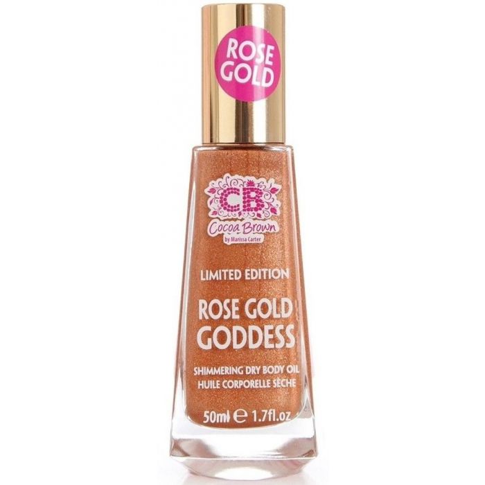 Rose Gold Goddess Huile Sèche Corps de Cocoa Brown est une huile corporelle sèche conçue pour apporter une touche lumineuse et sublimer le bronzage.