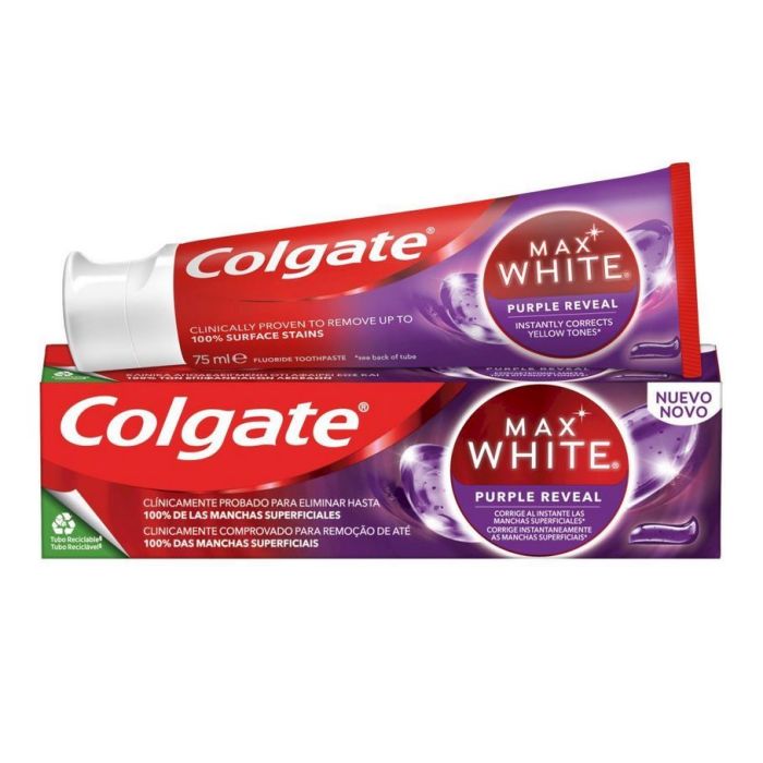 Colgate révolutionne les soins bucco-dentaires avec une innovation inspirée par la science de la colorista. Voici Colgate Max White Purple Reveal,le premier dentifrice violet conçu pour corriger instantanément les teintes jaunes* de vos dents.