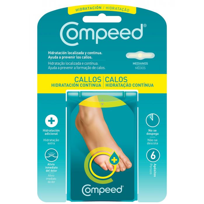 Pansements imprégnés de sérum hydratant qui favorisent l'élimination des callosités, soulageant immédiatement la douleur et la pression.