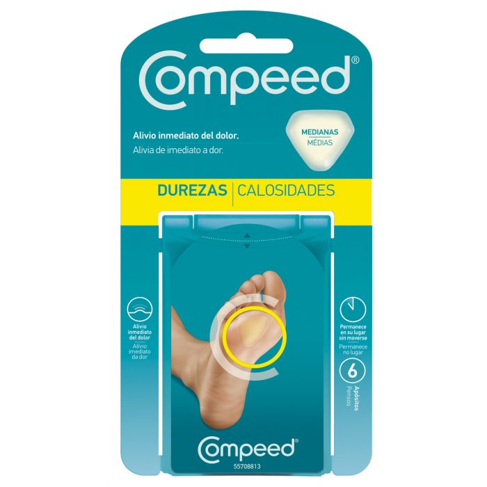 COMPEED DURETÉS : Pansement conçu pour hydrater et assouplir la zone affectée grâce à la technologie de gel actif hydrocolloïde.