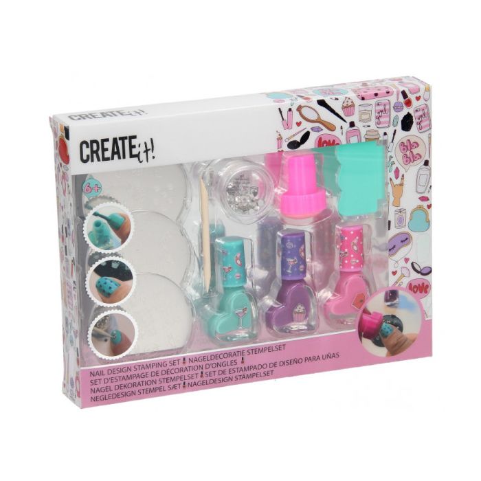 Set Create It! conçu pour les plus jeunes, comprenant un vernis à ongles, des tampons décoratifs et de petits diamants pour les ongles. Convient aux enfants à partir de 6 ans.