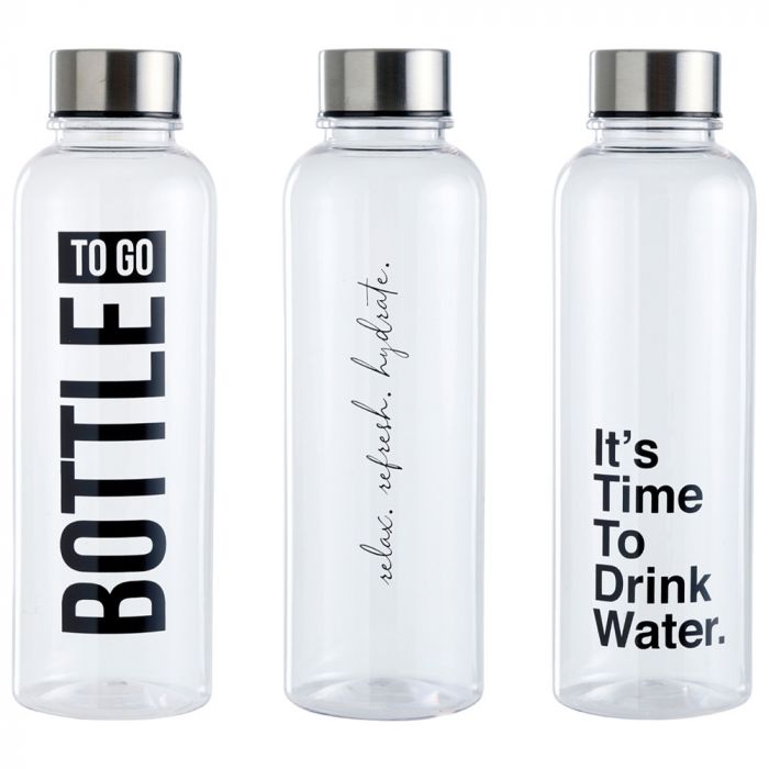 Bouteille de 500 ml en plastique avec bouchon en acier inoxydable, idéale pour un usage quotidien.