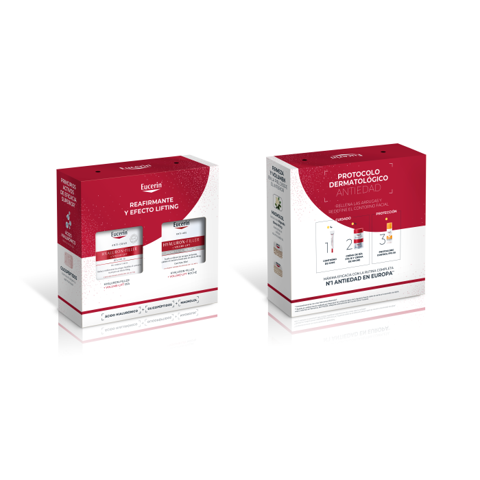 Le Coffret Anti-Âge Eucerin Hyaluron-Filler + Volume-Lift associe une crème de jour avec protection solaire SPF 15 et une crème de nuit. Ces deux formules agissent en synergie pour lutter contre la perte de volume et de fermeté, combler les rides profondes et redéfinir les contours du visage, pour un effet lifting visible.