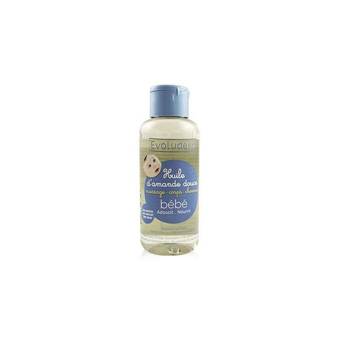 L’Huile d'Amande Douce pour Bébé d’Evoluderm apaise les irritations et adoucit les zones rugueuses tout en formant un film protecteur à la surface de la peau.