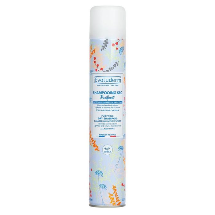 Shampoing sec purifiant pour tous types de cheveux de Evoluderm.