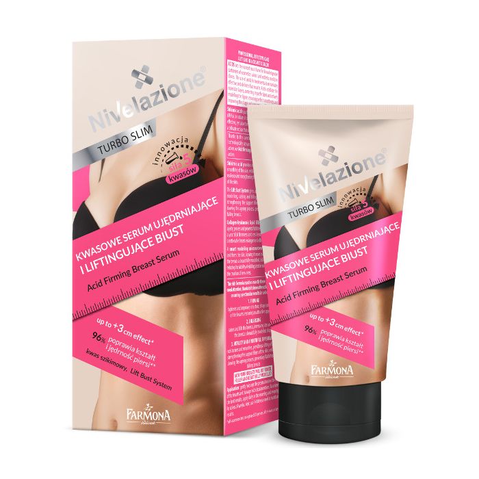 Acide Raffermissant et Lifting Buste Nivelazione raffermit la structure et la fermeté de la poitrine tout en maintenant une silhouette attrayante. Il repulpe et hydrate pour un effet lifting et volumateur, tout en ralentissant le vieillissement et le relâchement cutané.