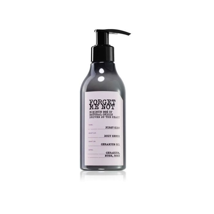 Le sérum corporel FIRST KISS de la gamme FORGET ME NOT capture des notes inoubliables de douceur, d’émotion et de beaux souvenirs. Découvrez ce sérum corporel unique, naturel et conçu avec passion, qui possède des propriétés régénérantes pour un soin holistique et une amélioration du bien-être général.