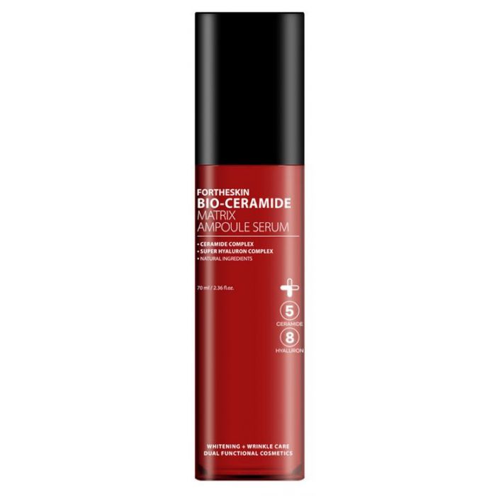 Le FORTHESKIN BIO-CERAMIDE MATRIX AMPOULE SERUM est un sérum visage enrichi de 5 complexes de céramides et de 8 composants d'acide hyaluronique, qui renforcent et protègent la peau contre les agressions extérieures.