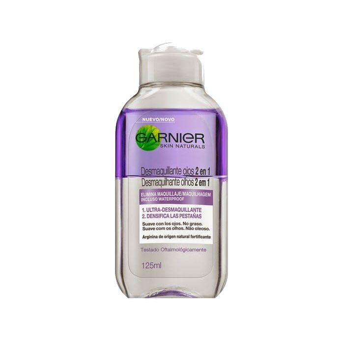 Le démaquillant pour les yeux 2 en 1 de Garnier élimine le maquillage, y compris le maquillage waterproof, tout en renforçant les cils. Enrichie en arginine d'origine naturelle, sa formule biphasée rend les cils plus épais et plus denses en 4 semaines.
