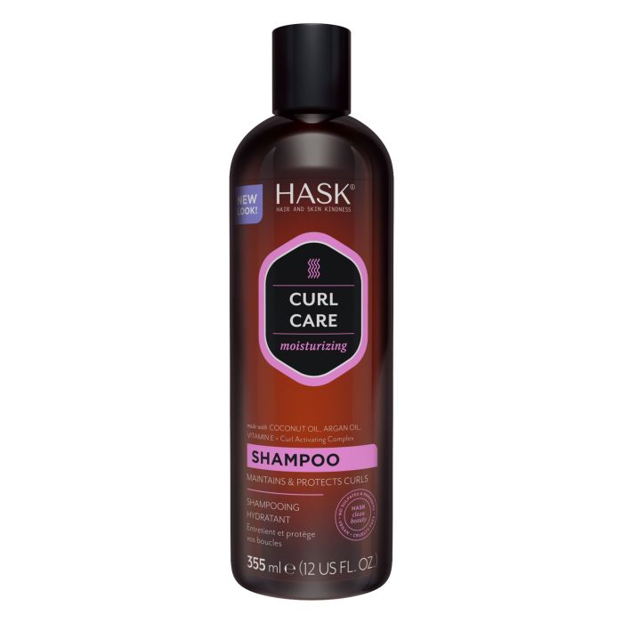 Le Curl Shampoing Cheveux Bouclés de Hask, enrichi d'un mélange miraculeux d'huile de coco, d'huile d'argan et de vitamine E, hydrate et protège la texture des boucles contre les dommages et les frisottis.