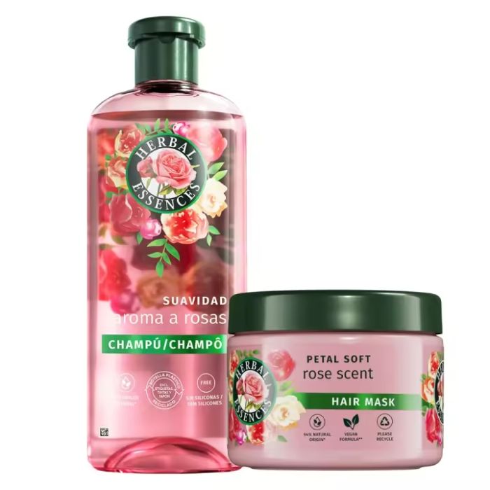 Le Shampoing HERBAL ESSENCES au Parfum de Rose nettoie en douceur tout en hydratant, laissant les cheveux soyeux, plus faciles à coiffer et naturellement brillants. De son côté, le Masque Capillaire au Parfum de Rose offre un soin intensif qui nourrit en profondeur, aidant à restaurer la douceur et à réduire les frisottis dès la première utilisation.