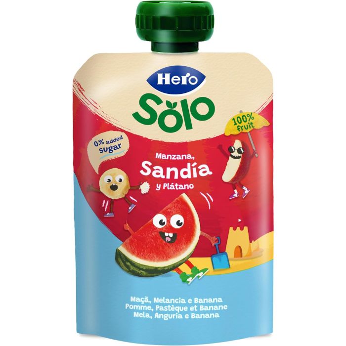 La pochette de fruits HERO Solo Pomme, Pastèque et Banane est élaborée avec des ingrédients 100 % naturels et des fruits soigneusement sélectionnés, pensée pour les bébés dès 6 mois. Une option saine pour compléter leur alimentation avec toute la saveur naturelle des fruits, sans sucres ajoutés ni gluten.