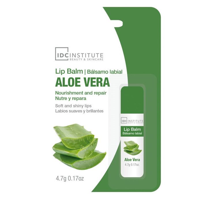 Baume à lèvres à l'Aloe Vera de IDC Institute : Il s'agit d'un baume à lèvres à l'aloe vera au goût très agréable. Le baume à lèvres prend soin et hydrate les lèvres sèches et gercées des effets du vent et du froid. Le Baume à lèvres à l'Aloe Vera de IDC Institute est composé d'aloe vera d'origine naturelle. C'est l'une des plantes les plus célèbres et connues pour ses nombreuses propriétés médicinales et cosmétiques. Certaines de ses propriétés sont :