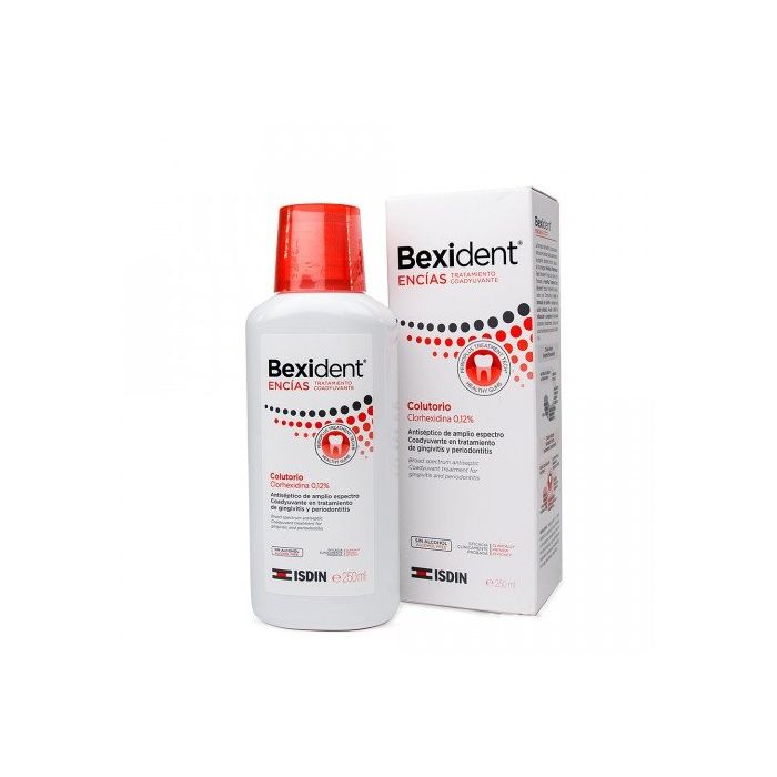 ISDIN Bexident Gencives Traitement Bain de Bouche : soin spécialement formulé pour le traitement et la protection des gencives. Sa formule contient l’antiseptique le plus efficace contre la plaque dentaire, la chlorhexidine, ainsi qu’un excipient adjuvant qui limite l’adhésion de la plaque bactérienne.