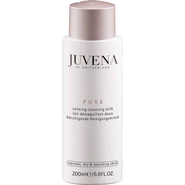 JUVENA PURE CALMING CLEANSING MILK : Lait démaquillant doux et apaisant, conçu pour nettoyer la peau en douceur tout en la calmant. Idéal pour les peaux normales, sèches et sensibles.