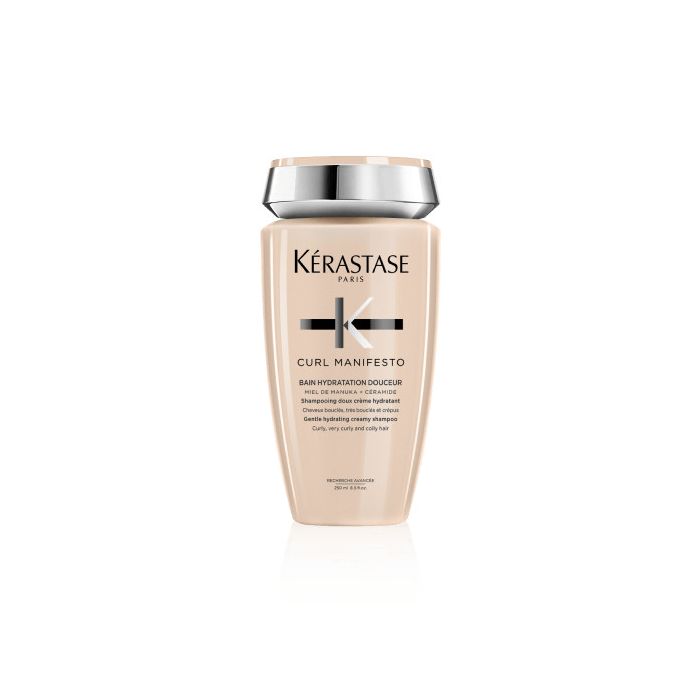 Le Curl Manifesto Bain Hydratation Douceur  de Kérastase est un shampoing onctueux et hydratant au miel de manuka et à la céramide doux ondulé et frisé.