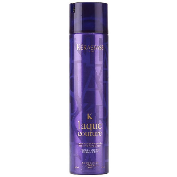 K Laque Couture Fixation Moyenne de Kérastase est une laque en spray adaptée à tous les types de cheveux, recherchant fixation et éclat.