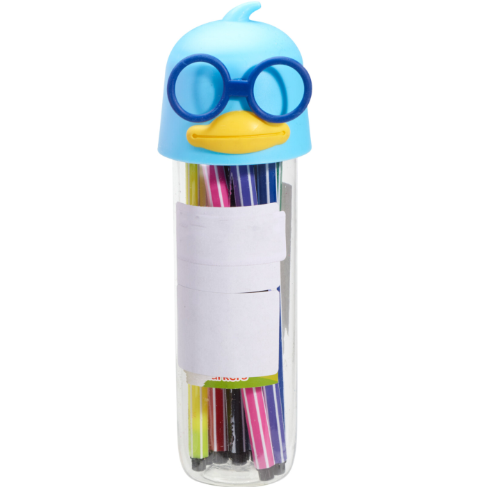Ce set pratique comprend 12 marqueurs aux couleurs vives dans un tube réutilisable avec un bouchon en forme, idéal pour les garder organisés et toujours à portée de main.