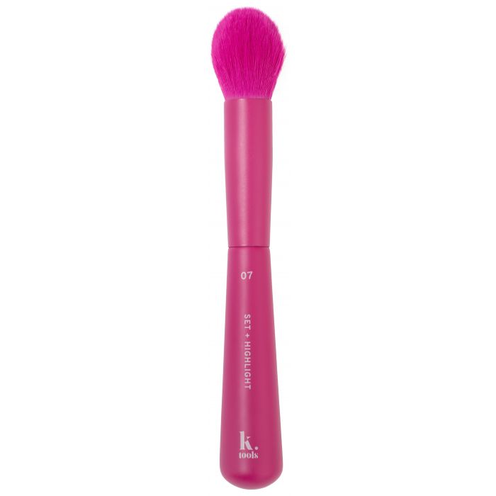 Pinceau doux et dense idéal pour appliquer le highlighter sur les zones saillantes du visage et fixer le maquillage avec des poudres de finition ciblées.