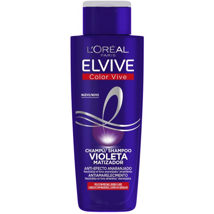 Elseve Color-Vive Shampoing Violet Déjaunisseur nettoie, nourrit et hydrate l’ensemble de vos cheveux de la racine à la pointe et nuance les teintes orangées/amertissantes indésirables grâce à sa formule aux pigments violets.