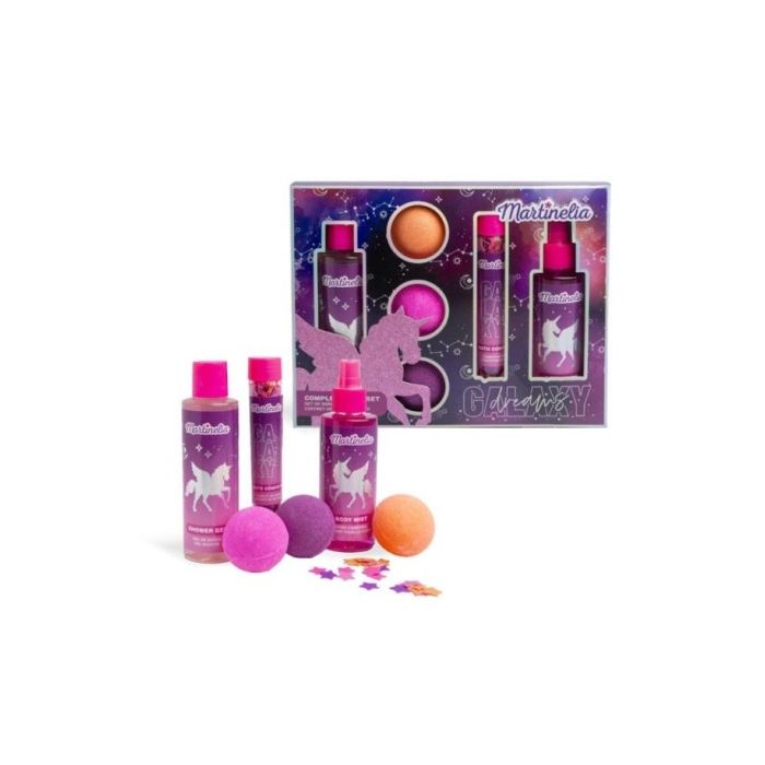 Coffret de bain pour enfants comprenant du confetti pour le bain, une brume corporelle, un gel douche et 3 bombes de bain Galaxy Dreams Martinelia.