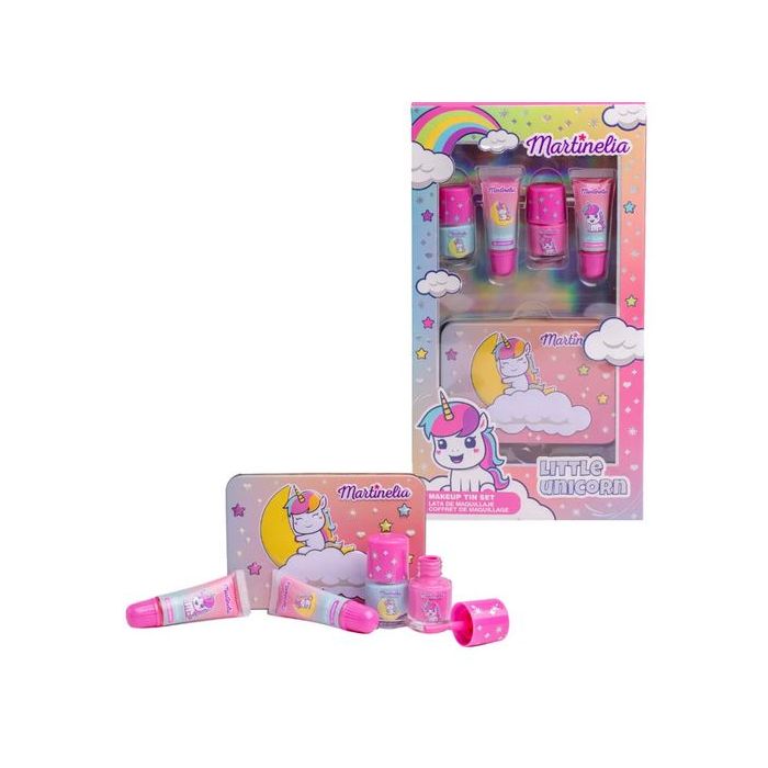 Magie et amusement garantis ! Le coffret Martinelia Little Unicorn Makeup Tin est le cadeau idéal pour que les enfants s’amusent à imiter les adultes en toute sécurité. Ce set de maquillage pour enfants non toxique, au design adorable de licorne, stimule le jeu créatif et l’imagination. Un moment de plaisir enchanté pour les petites princesses !