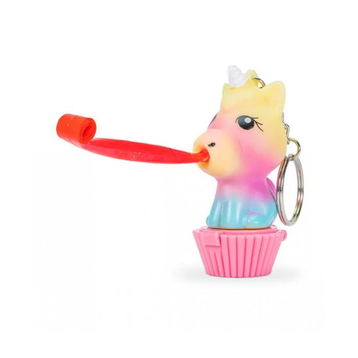 Baume à lèvres licorne multicolore avec différents parfums de myrtille, guimauve, fraise et banane. Pressez-le pour découvrir sa magie.