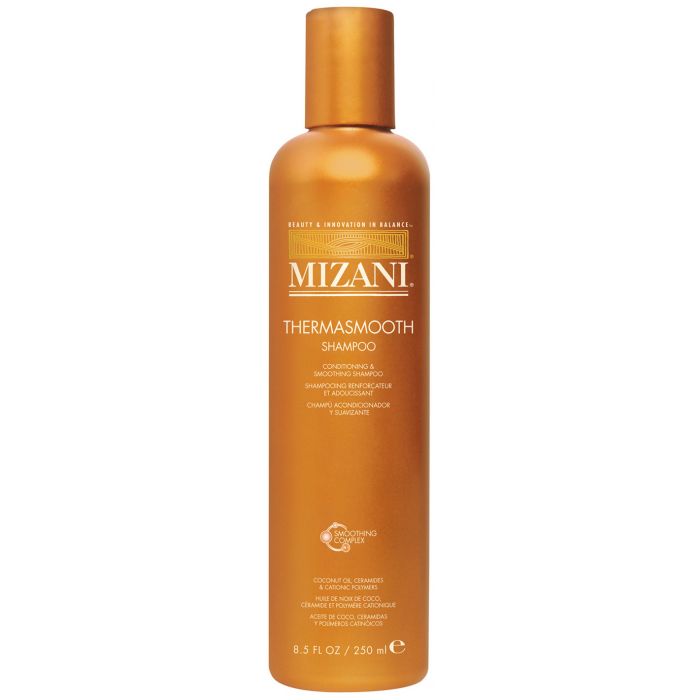 Thermasmooth Shampoing Après-shampoing et Adoucissant de Mizani est un shampoing hydratant professionnel qui traite et protège vos cheveux avant toute utilisation de chaleur: lissage, fer à friser, sèche-cheveux.