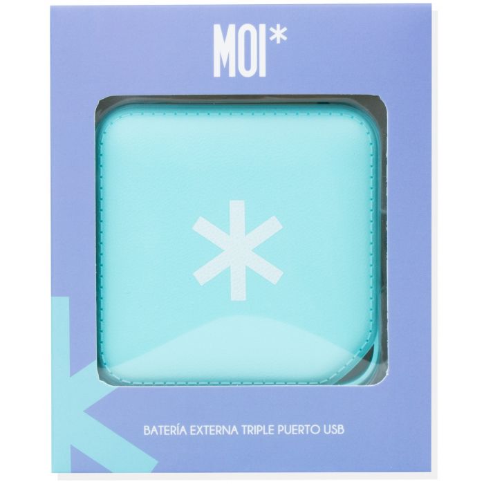 Batterie externe triple port USB MOI* : batterie portable de 6 000 mAh avec 3 ports USB et un port Micro-USB.