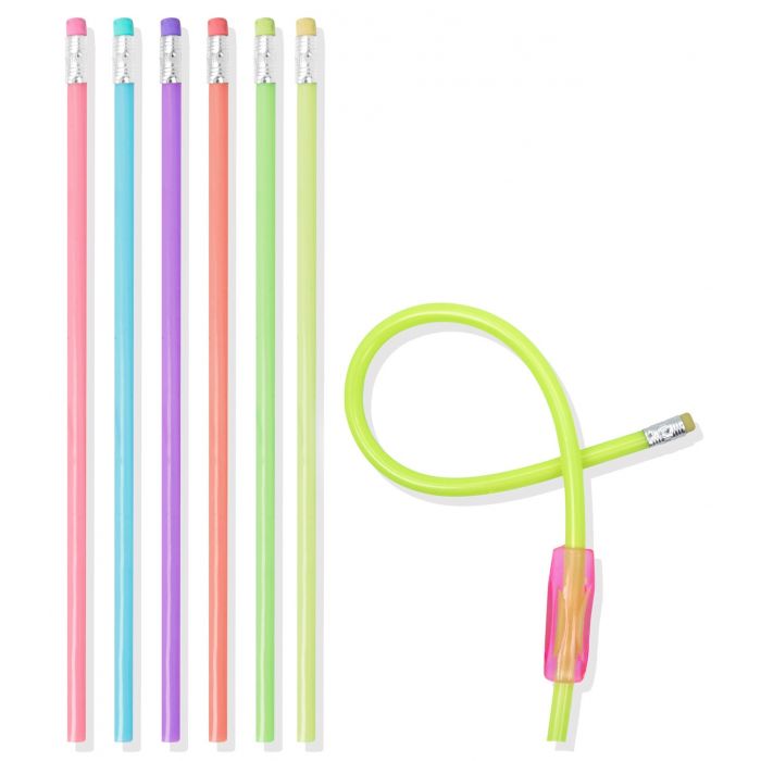 Les crayons flexibles de MOI* peuvent être pliés et tordus dans toutes les directions. Ils sont fournis avec une gomme à effacer et un support antidérapant pour une meilleure prise en main.