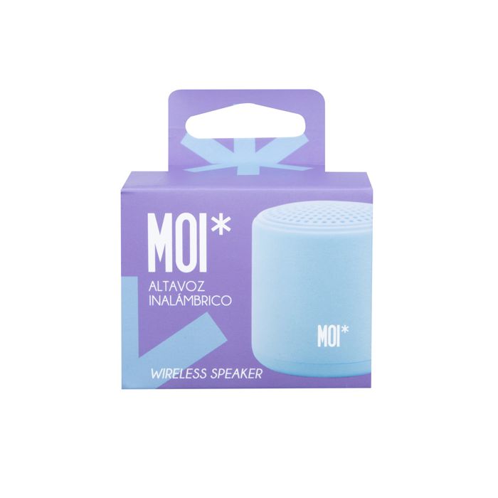 Haut-parleur sans fil MOI* avec connexion Bluetooth 5.0. Il peut se connecter au smartphone, à la tablette ou à tout autre appareil compatible. Vous pourrez écouter votre musique partout et à tout moment. La puissance de sortie est de 3W. Batterie : 400mAh 3.7 V. Durée de la batterie, jusqu'à 3 heures. Il est équipé d'une corde pour toujours garder le haut-parleur à portée de main.