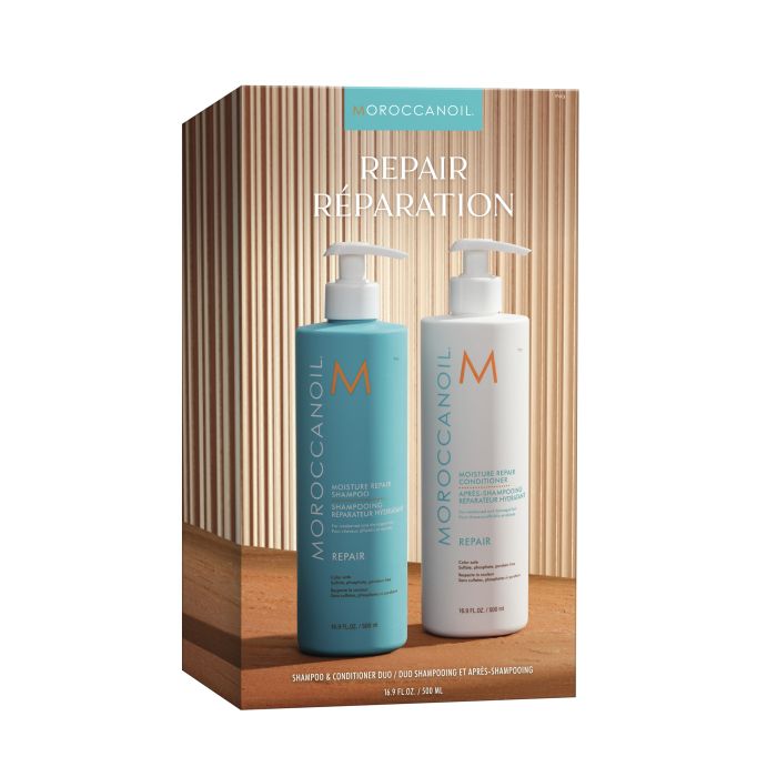 Découvrez le pouvoir réparateur de Moroccanoil avec cet ensemble spécial de shampoing et d'après-shampoing réparateurs dans un généreux format d'un demi-litre! Ce duo infuse des nutriments réparateurs dans vos cheveux, leur redonnant vitalité, élasticité et maniabilité.